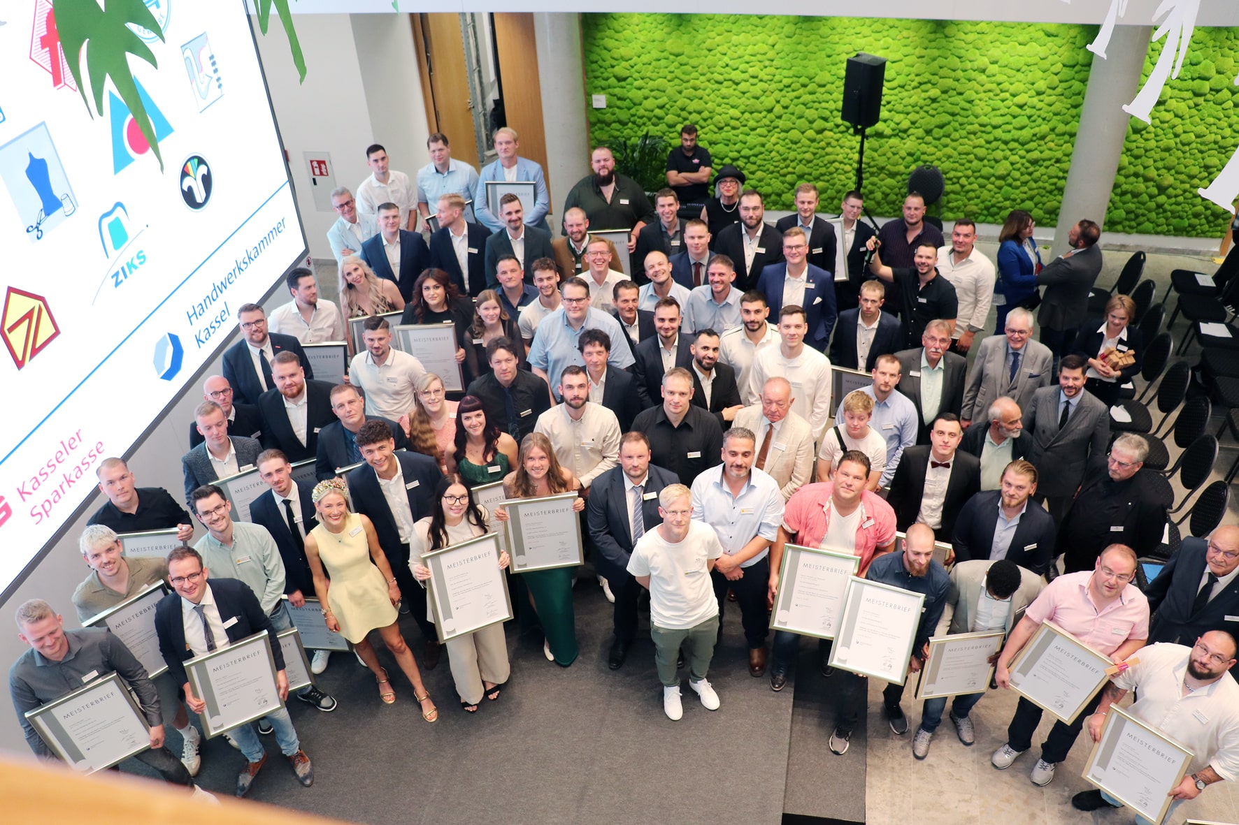 Kassel. Es ist immer wieder eine außergewöhnliche Leistung, den höchsten Abschluss, den das Handwerk bietet, zu erreichen. Die Kreishandwerkerschaft Kassel und die Handwerkskammer würdigen die Menschen, die dieses Ziel im wahrsten Sinne des Wortes „gemeistert“ haben, mit ihrer traditionellen Meisterfeier. Am vergangenen Freitag kamen im neuen S-Finanz-Campus der Kasseler Sparkasse rund 300 festlich gekleidete Gäste zusammen, um die neuen Handwerksmeisterinnen und – meister, die Goldenen Meister sowie die Innungssieger der diesjährigen Gesellenprüfungen zu ehren.